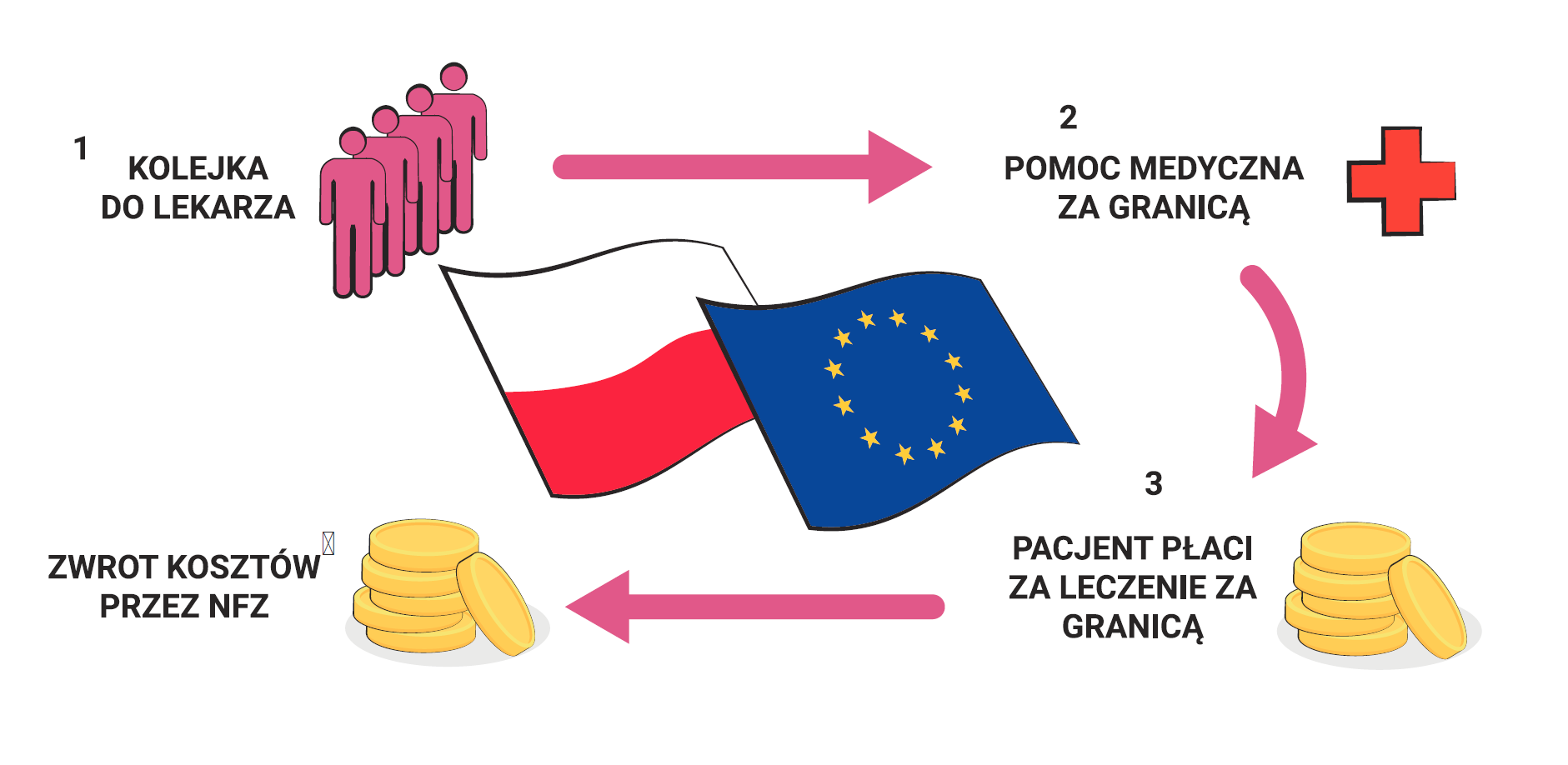- możemy leczyć się we wszystkich krajach UE nie tylko w nagłych przypadkach i przynajmniej część kosztów poniesie NFZ, o ile potrzebne nam świadczenie znajduje się w koszyku świadczeń gwarantowanych;